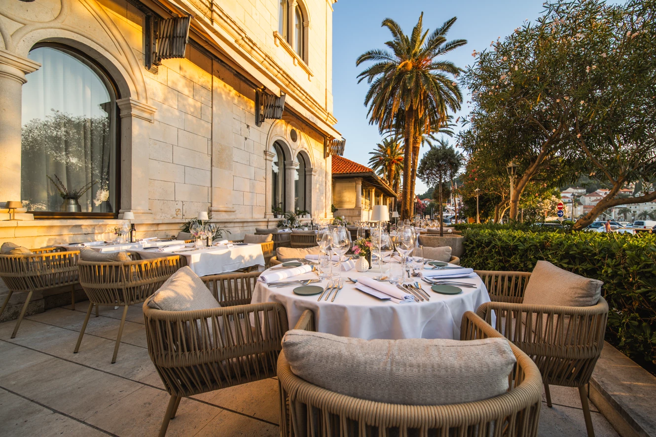 Dining is a highlight. The hotel restaurant focuses on local cuisine, with fresh fish, seasonal ingredients, and Dalmatian recipes. Breakfast is served with sea views, a relaxed way to start the day before exploring the island.